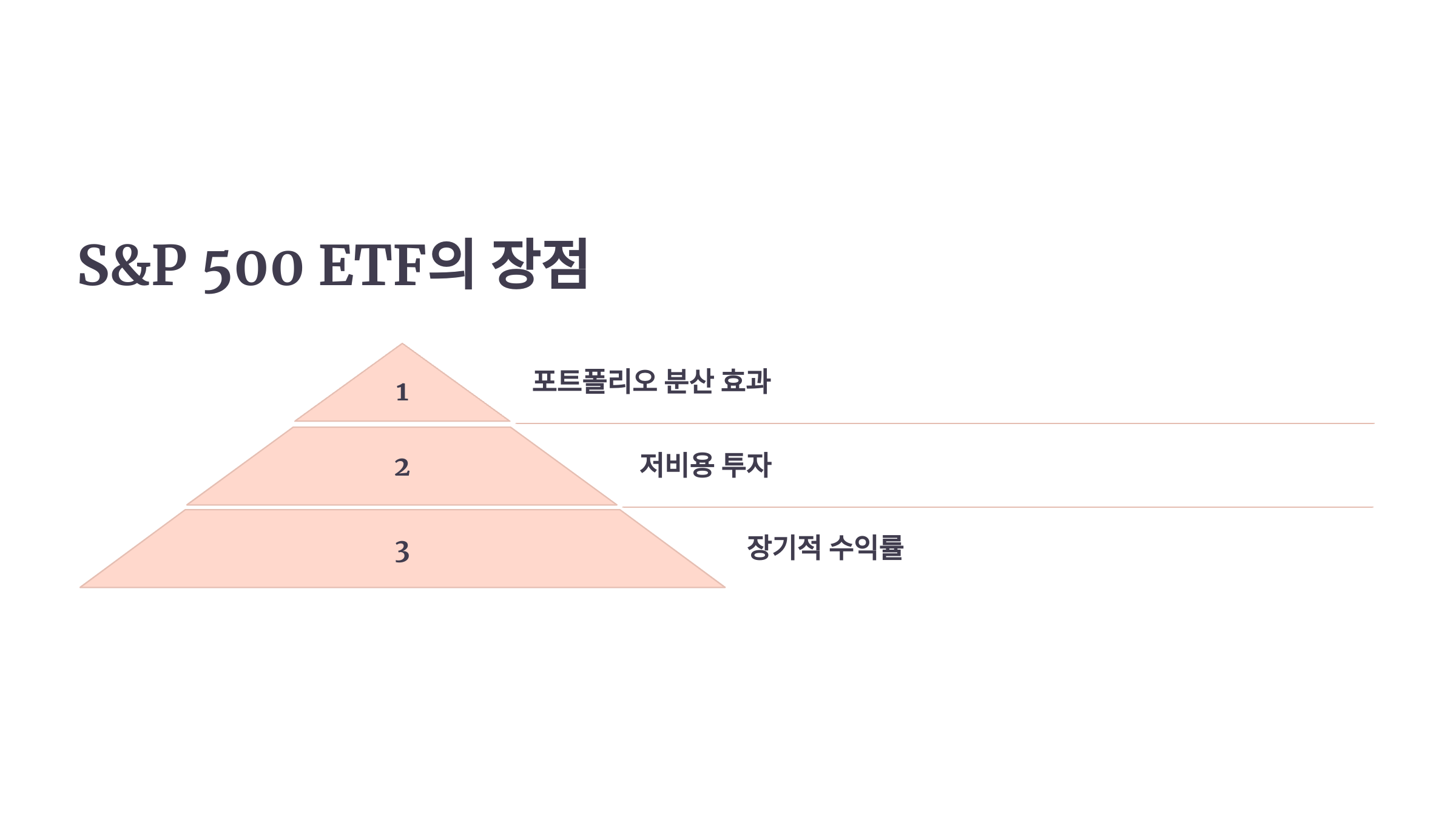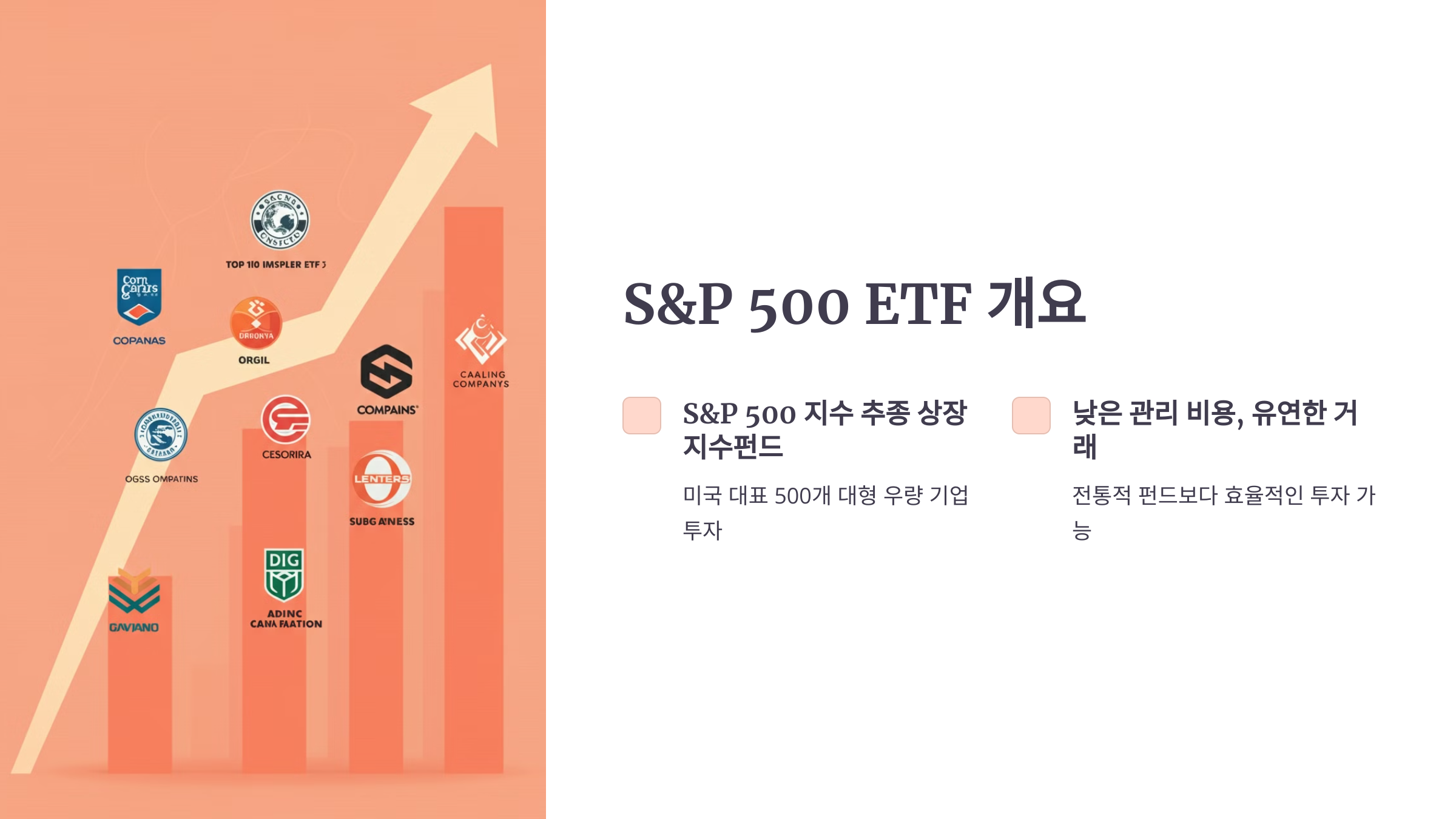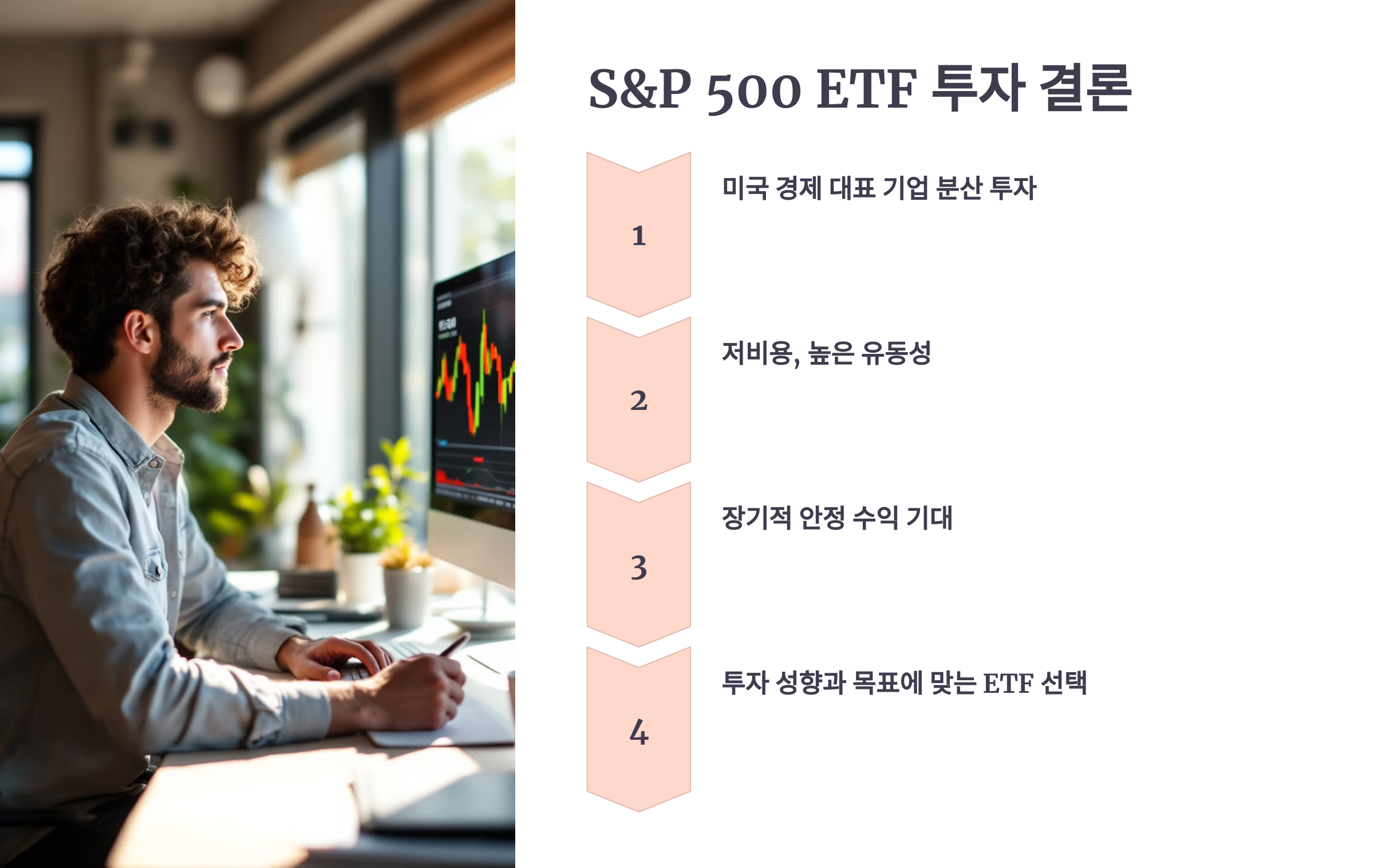 S&P 500 ETF는 미국 경제와 대형 우량주에 폭넓게 분산 투자하는 방법으로, 주식처럼 쉽게 매매가 가능하고 장기적으로 꾸준한 수익을 기대할 수 있어 인기 있는 상품입니다. 투자 비용 절감과 높은 유동성을 제공하며, 초보자부터 고급 투자자까지 안정적인 수익을 목표로 하는 사람들에게 추천됩니다.