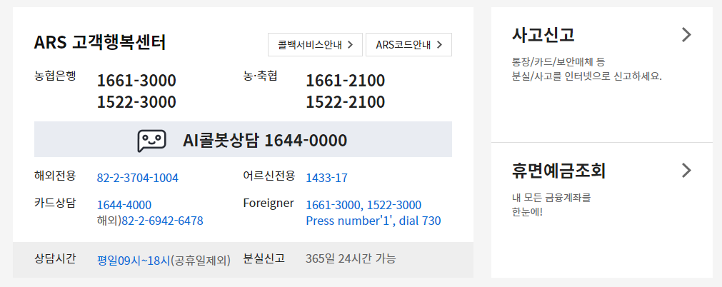 농협 고객센터에 전화하여 상담을 받고 해결 방법을 안내받을 수 있습니다.