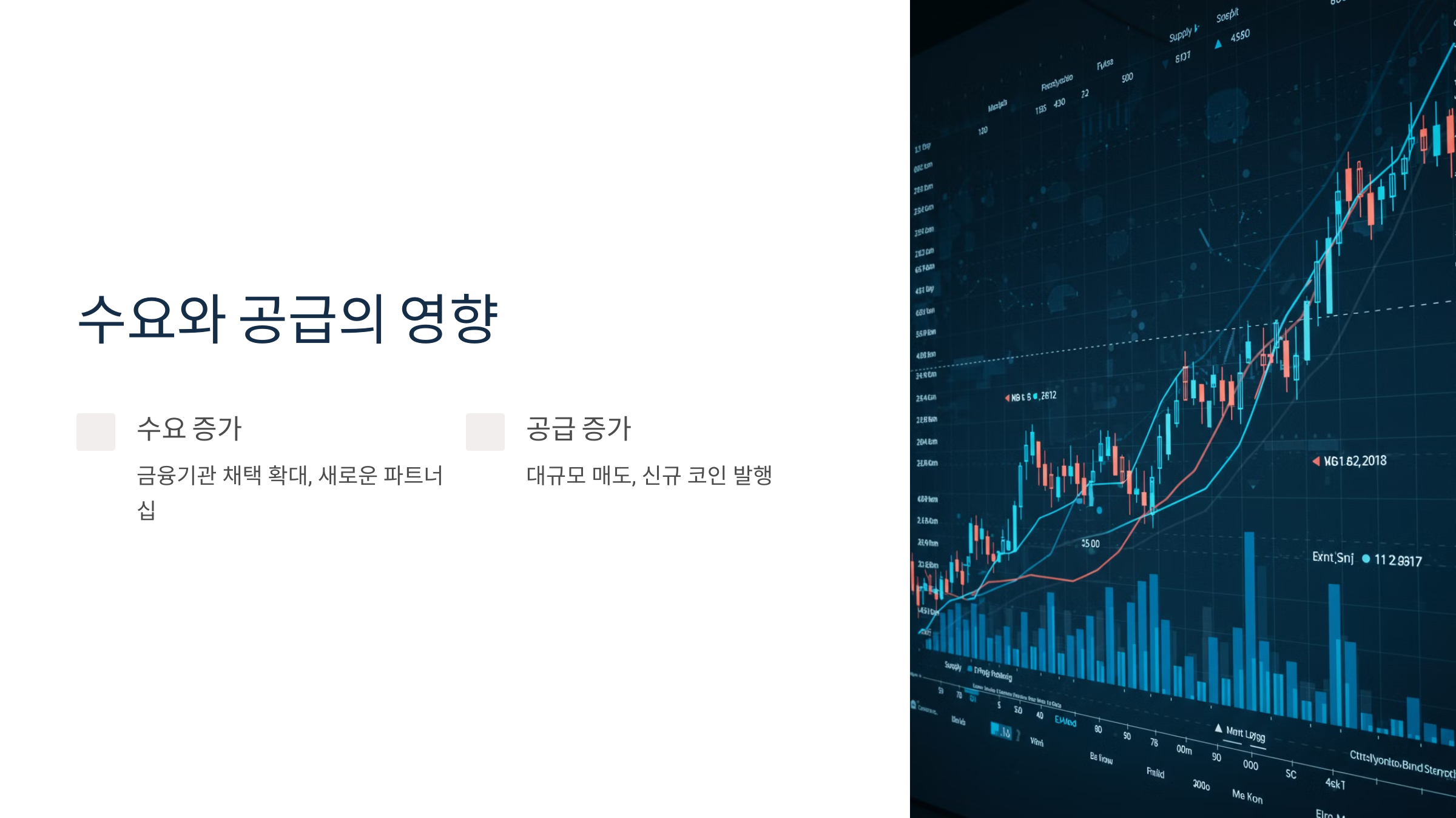 - 공급 증가 요인: 대규모 매도, 신규 코인 발행