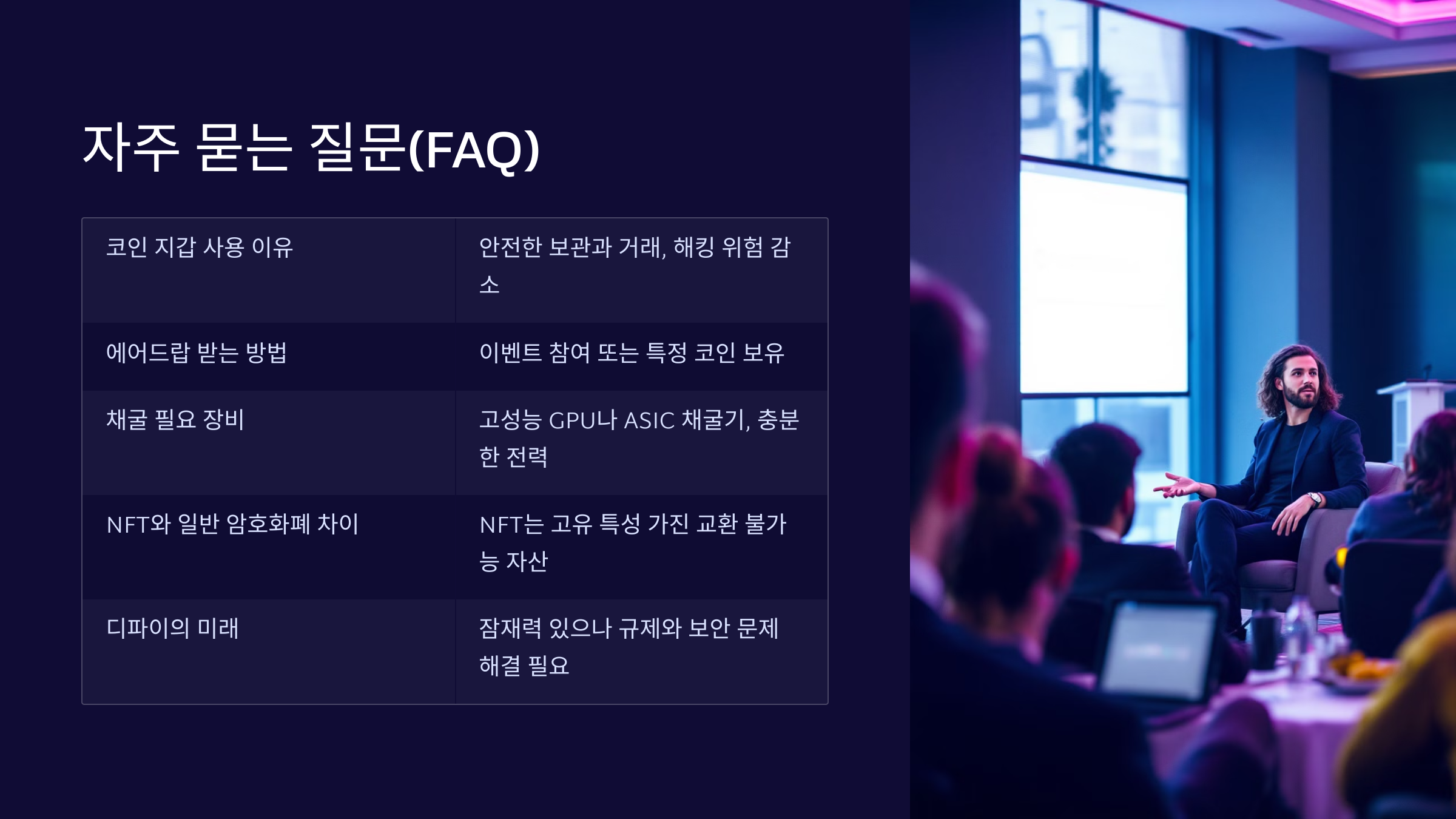 A3: 채굴을 위해서는 고성능 GPU나 ASIC 채굴기와 충분한 전력 공급이 필요합니다. 또한, 채굴 과정에서 발생하는 전기 요금을 고려해야 합니다.